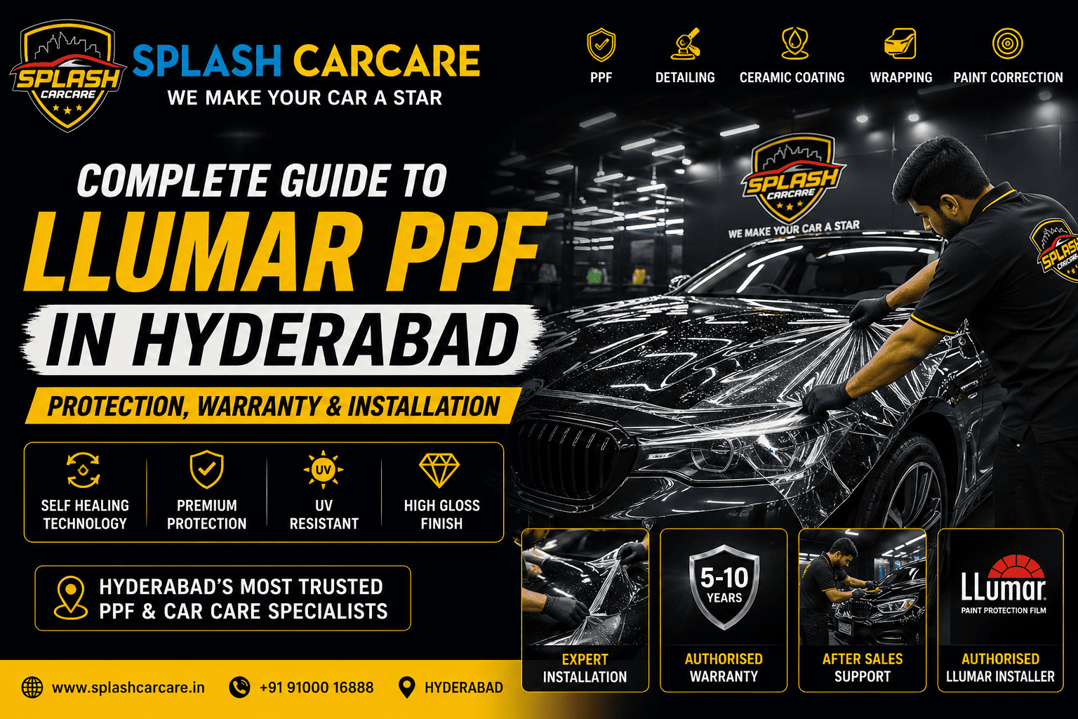 That’s exactly why we’re writing this guide to help you understand everything about LLumar PPF, from protection and warranty to installation and pricing. If you’re searching for clear ppf services in banjara hills, hyderabad , then SPLASH CARCARE is your best choice.